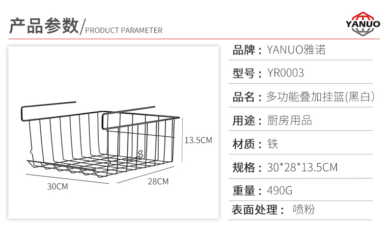 多功能疊加掛籃(黑白)